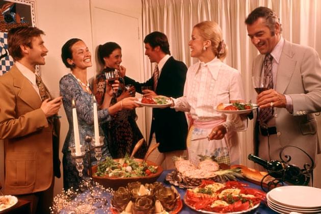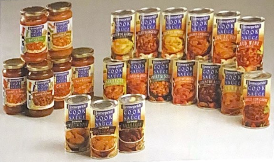 Dinner parties: the fondue set was a must, along with cheese & pineapple hedgehogs, cheese straws, Twiglets, cocktail sausages, vol-au-vents and garlic mushrooms. No party was complete without a Quiche Lorraine (tomato and bacon), and people were inspired by holidays abroad – adding pizza, gazpacho and paella, and meals from Indian and Chinese restaurants, with Homepride helping to make chicken curry or sweet and sour pork.