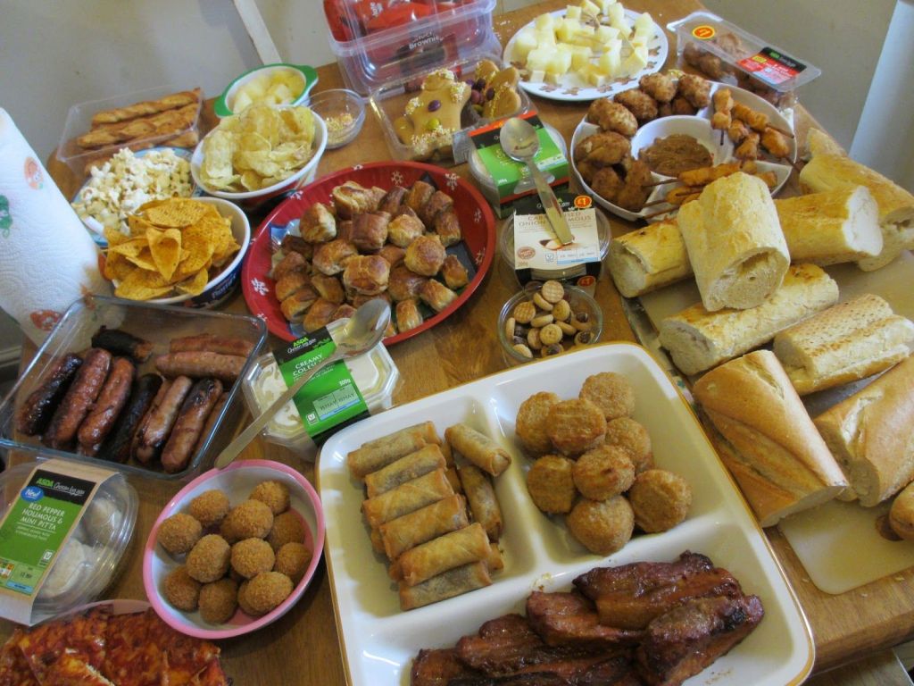 The cheese and pineapple hedgehog was still a firm favourite, as were cocktail sausages (in sticks), sausage rolls and the much-maligned vol-au-vents, although the fillings were more adventurous than their stodgy 70s counterparts. New, tastier recipes included various fish/seafood as well as the addition of more exotic flavourings such as fennel, turmeric and coriander. The quiche fillings became more unusual, and the more adventurous tried salmon rillette, samosas and spring rolls.