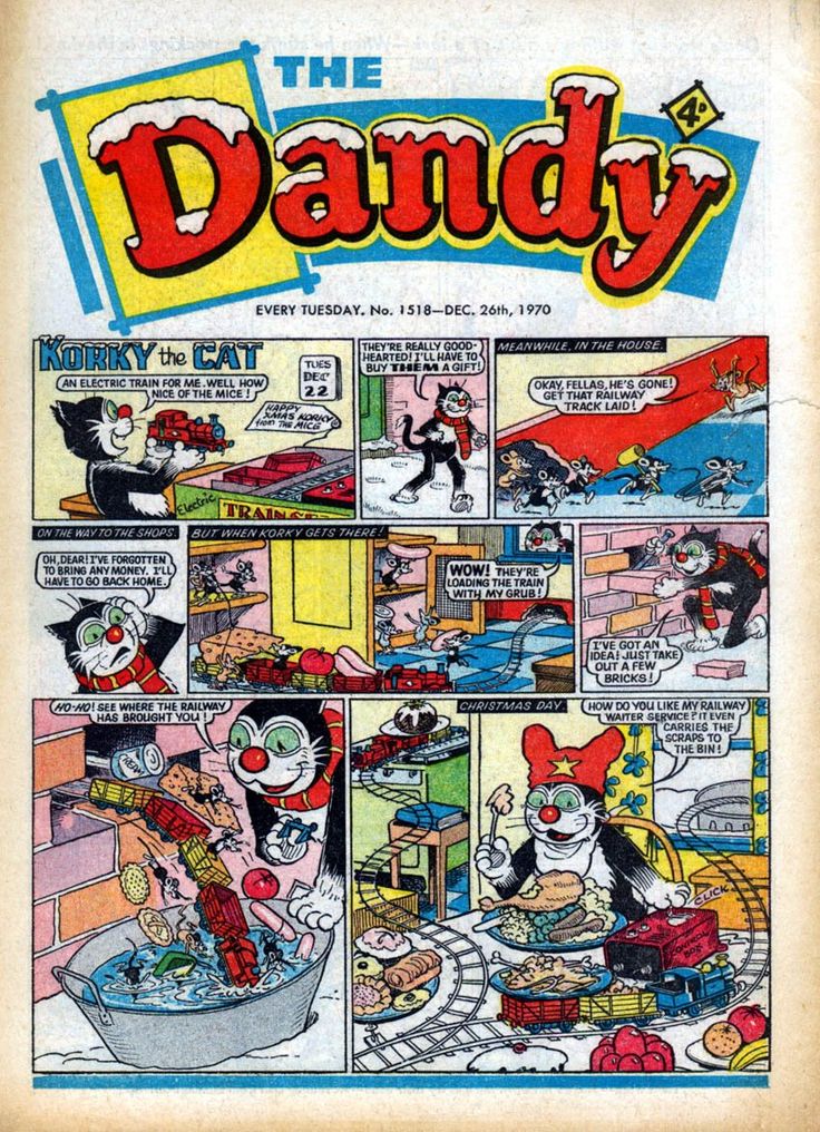 A British children’s comic magazine published by the Dundee based publisher DC Thomson whose first issue was printed in December 1937. The most notable difference between this and other comics of the day was the use of speech balloons instead of captions under the frame. The comic has had a number of different cover stars (comic strips appearing on the front cover), firstly Korky the Cat, who was on the cover from 1937 to 1984. Desperate Dan, long since the comic’s most popular character, then took over the cover until 1999. Some of the most popular characters include: