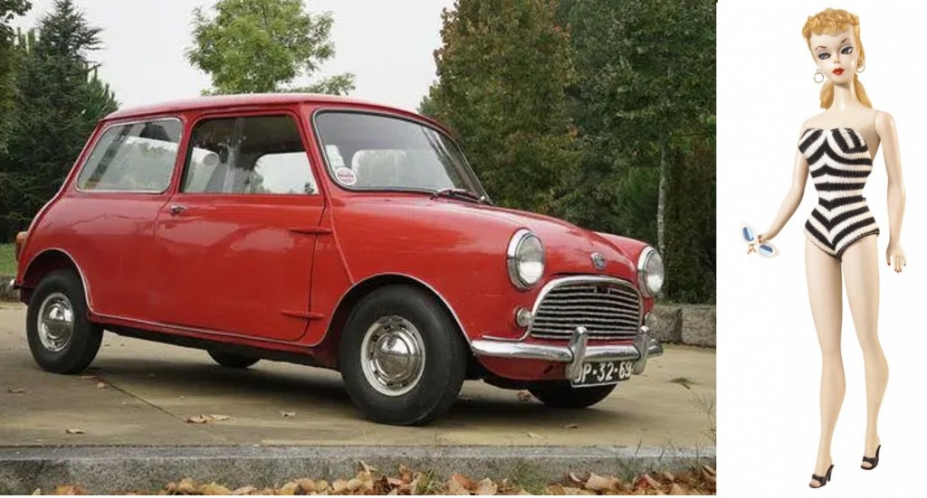 1959 – Barbie Doll 1959 – Britain’s first motorway, the M1, between Birmingham and London, opened. 1959 – The Mini is launched, designed by Alec Issigonis, and becomes the best-selling British car of all time. It cost £496 – about the amount of money someone earned in a whole year.